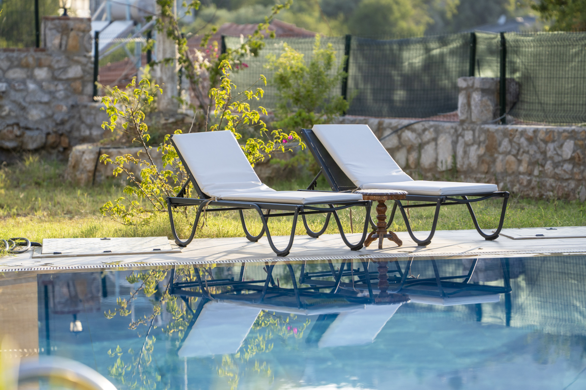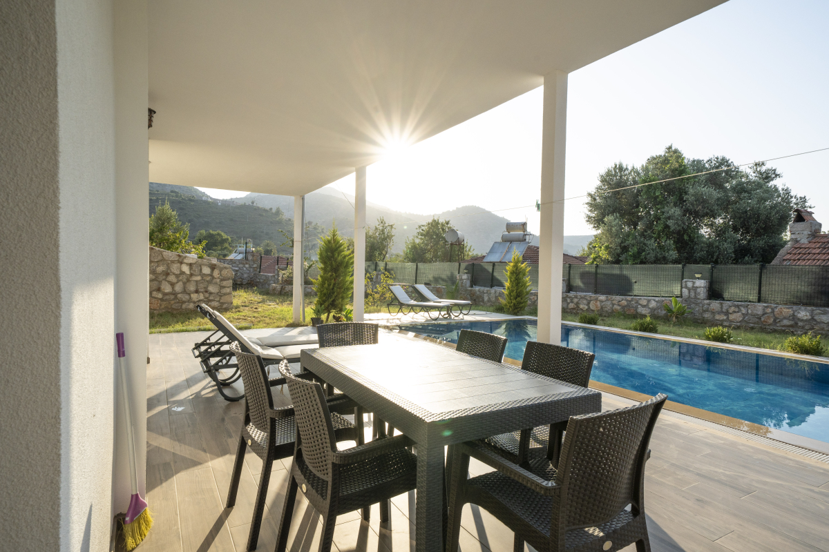 Havuz başında 5 adet şezlong, salıncak, kış bahçesi ve bir bahçe oturma grubu vardır.