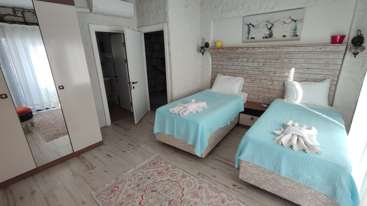 2 ebeveyn banyolu yatak odası (1. oda çift kişilik yatak, 2. oda iki tek kişilik yatak + açılır kapanır yatak)