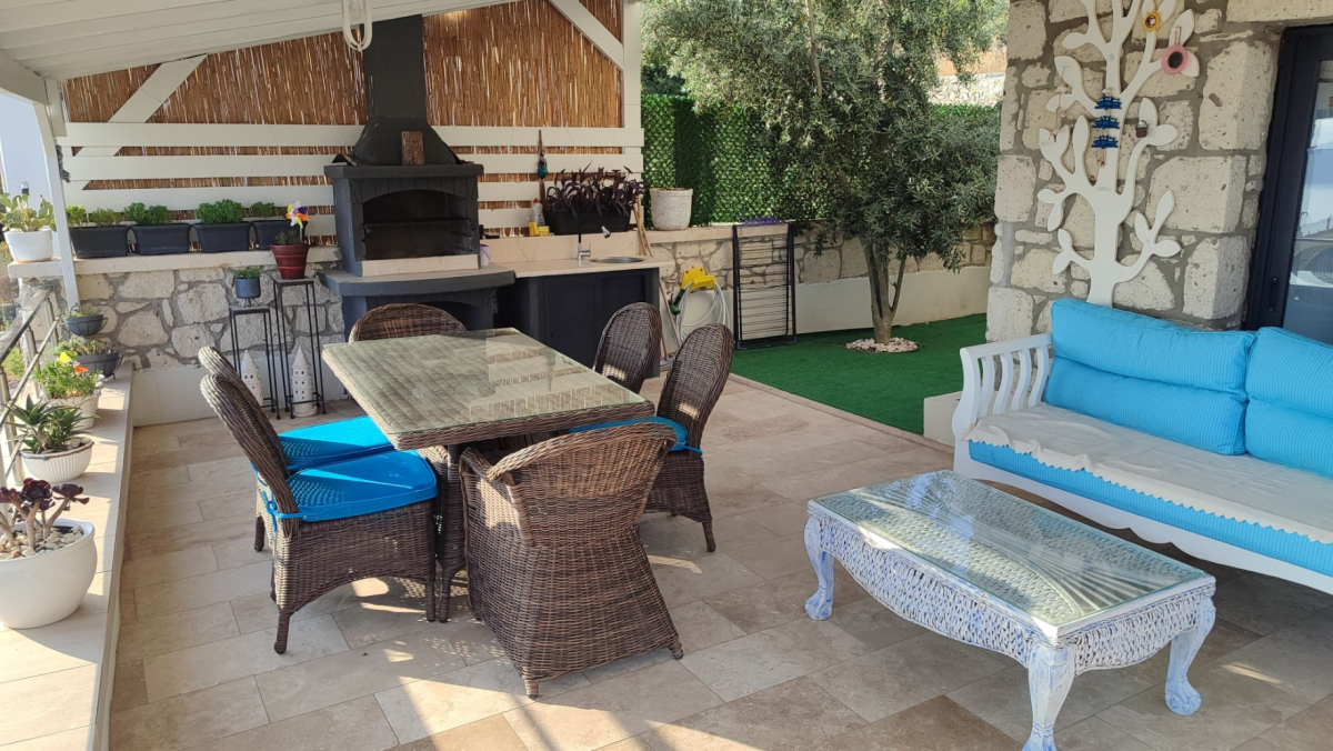 Bahçe: Özel otopark, mangal/barbekü alanı, bahçe oturma grubu, şezlong/şemsiye